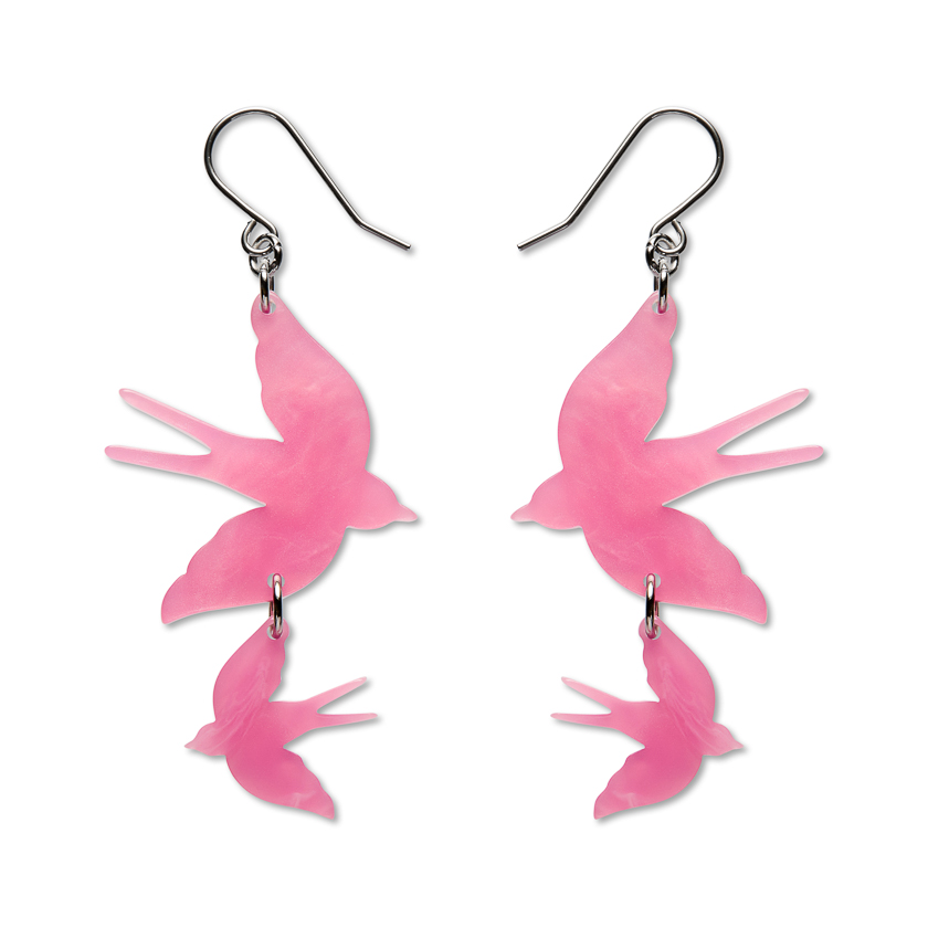Double Swallow Drop Earrings – Pink – By Your Side – Apr26