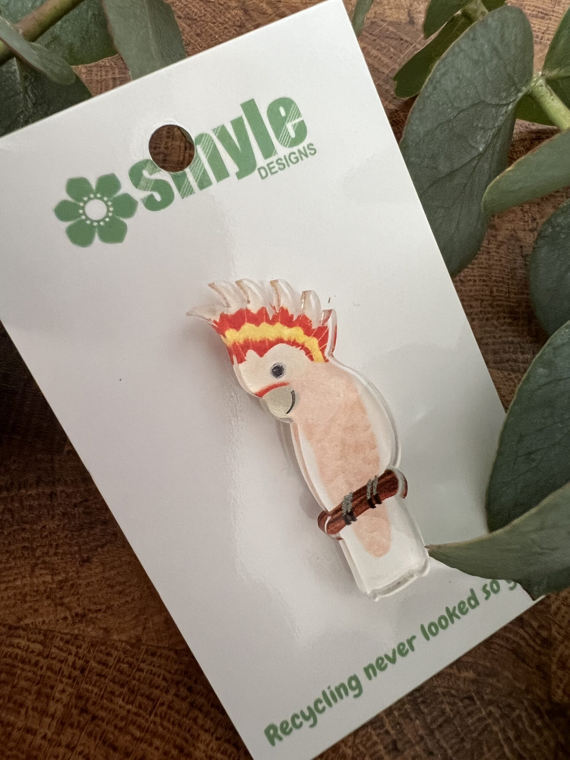 We print onto vinyl records, CDs and 100% recycled acrylic, cut to size and assemble into earrings, brooches and pins….all just the two of us, in our happy little home studio in sunny Brisbane, Australia.
